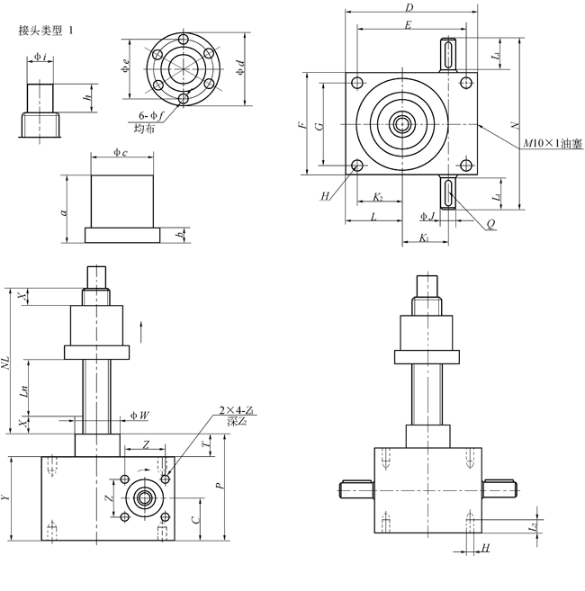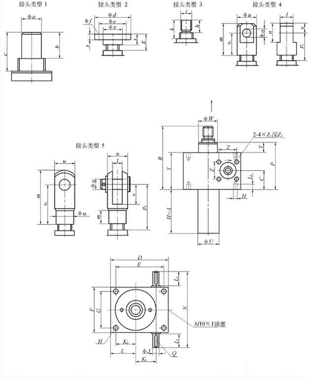 B型結構形式的絲杠頭部分為:1型(圓柱),0型(無接頭)共二種。