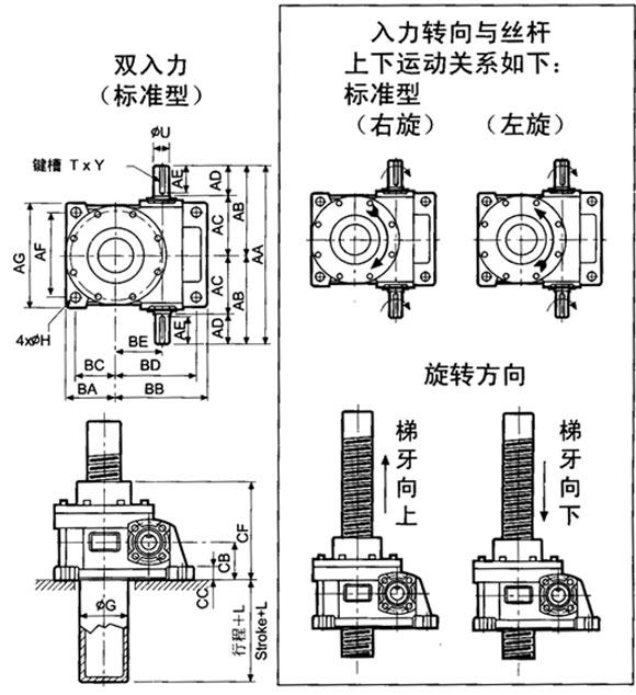 JRSS系列蝸輪絲桿升降機(jī)(又名千斤頂); 具有結(jié)構(gòu)緊湊、體積小的特點(diǎn); 安裝方便、形式多; 可靠性高、壽命長(zhǎng); 具有起升、下降及借助輔件推進(jìn)、翻轉(zhuǎn)等多種功能; 可單臺(tái)使用,也可多臺(tái)組成使用; 動(dòng)力源廣泛,可用電動(dòng)機(jī)或其它動(dòng)力直接帶動(dòng),也可...
