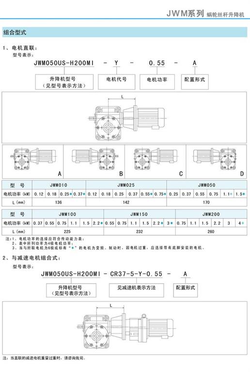 JWM升降機與電機直聯型號表示及與減速電機組合式