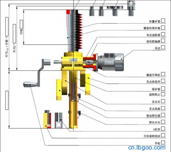 4.對有雙導向套的升降機,絲杠除承受軸向力外,也允許承受一定的側向力。